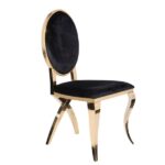 The chair’s frame is finished in beautiful gold, which complements the chair’s velvet cushion perfectly. The chair’s compact size makes it perfect for use at a sweetheart table or as a statement piece for your wedding decor.